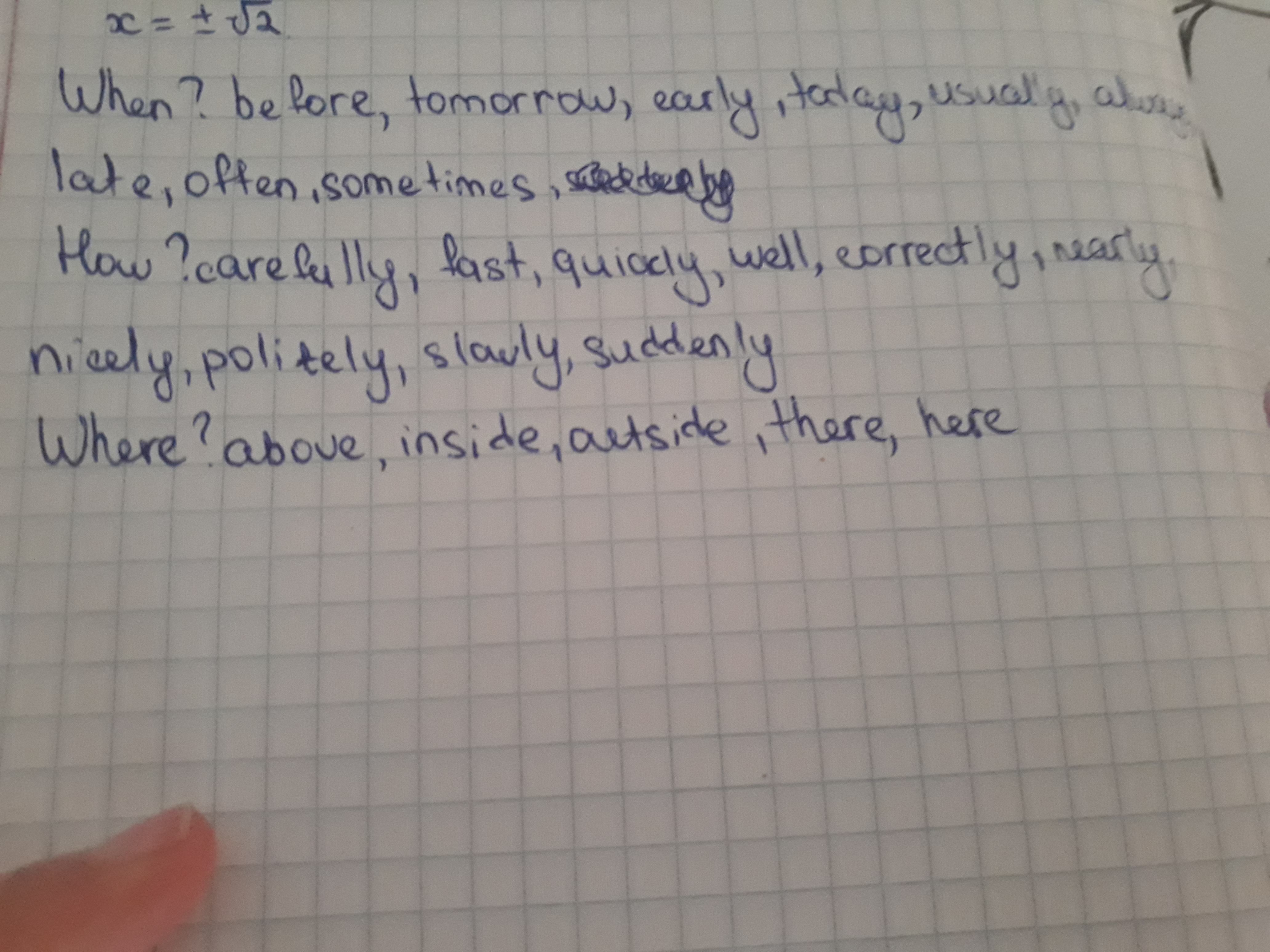fast, quickly, before, tomorrow, high, here, much, long, far, carefully, early, wide, quietly, once, well, inside, today, badly, sometimes, usually, always, there, late, above, aloud, brightly, since, many, correctly, weekly, nearly, nicely, noisily, outside, politely, slowly, suddenly, windy, often, low, just