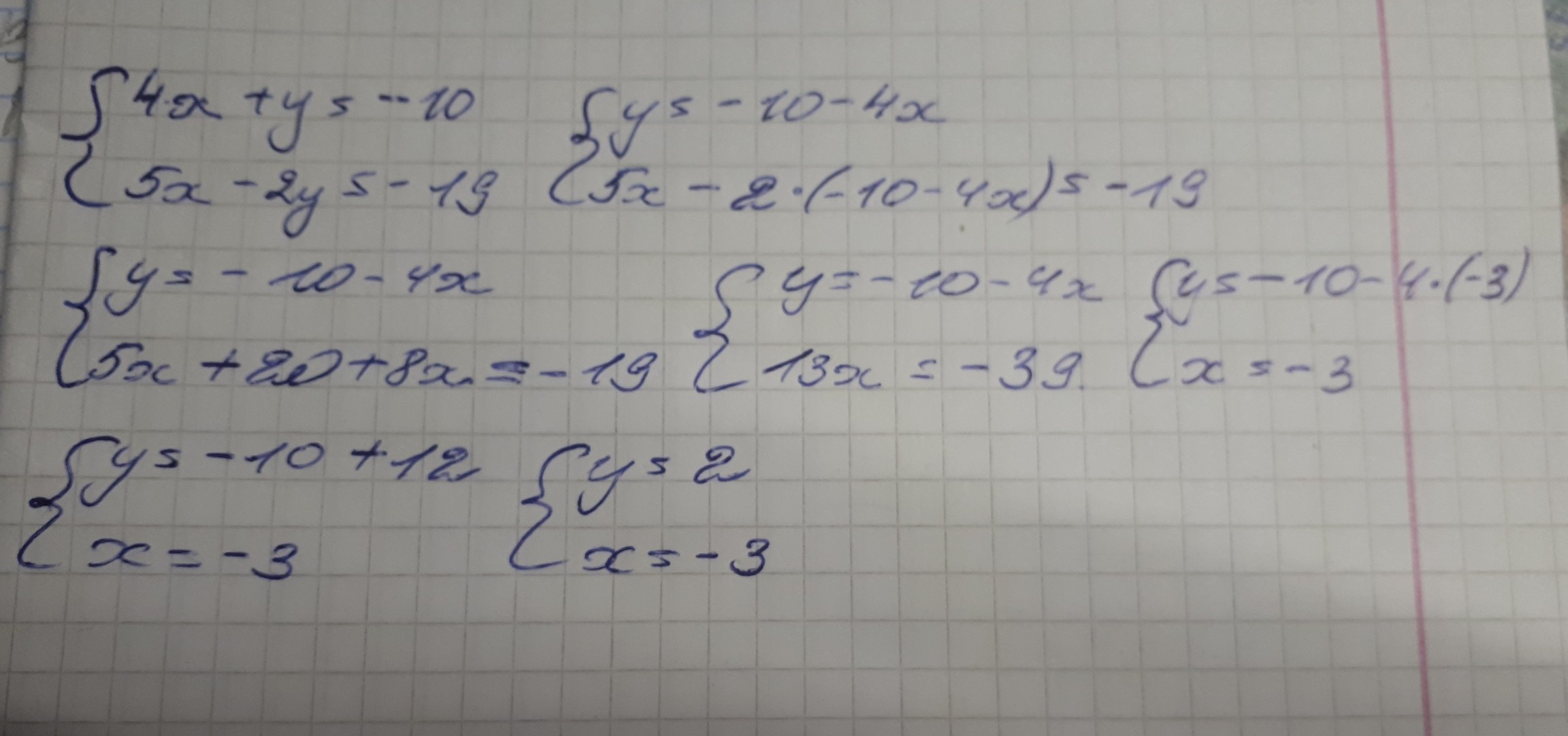 номер 5 ответ: х=-3;у=2.