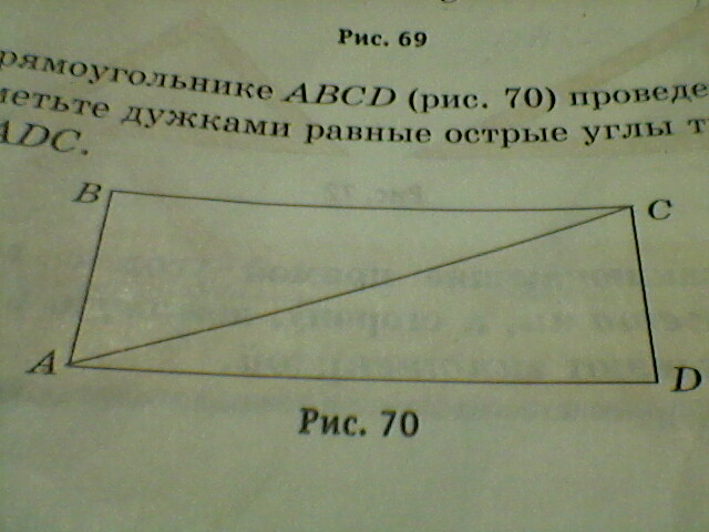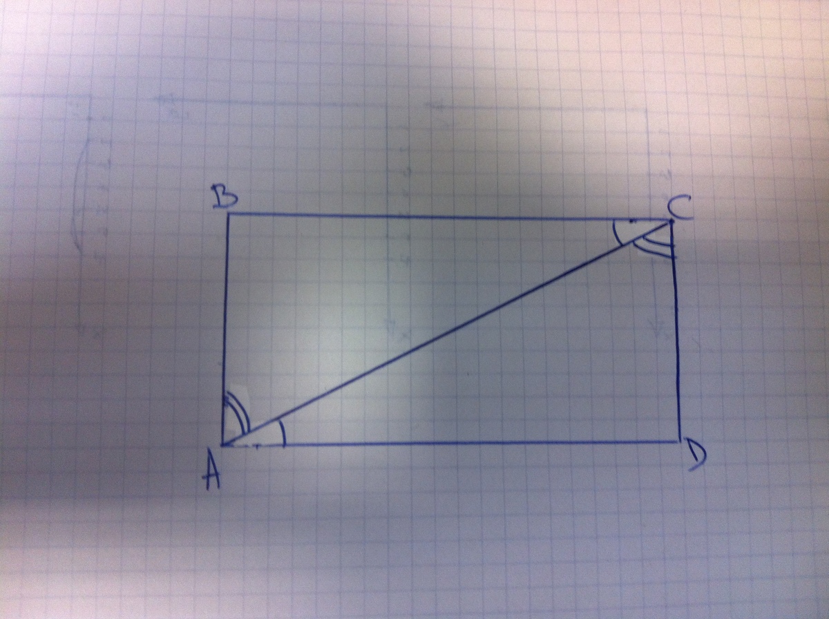 1) В прямоугольнике АВСД проведена диагональ АС. Отметьте дужками равные острые углы треугольников АВС и АДС. Помогите...