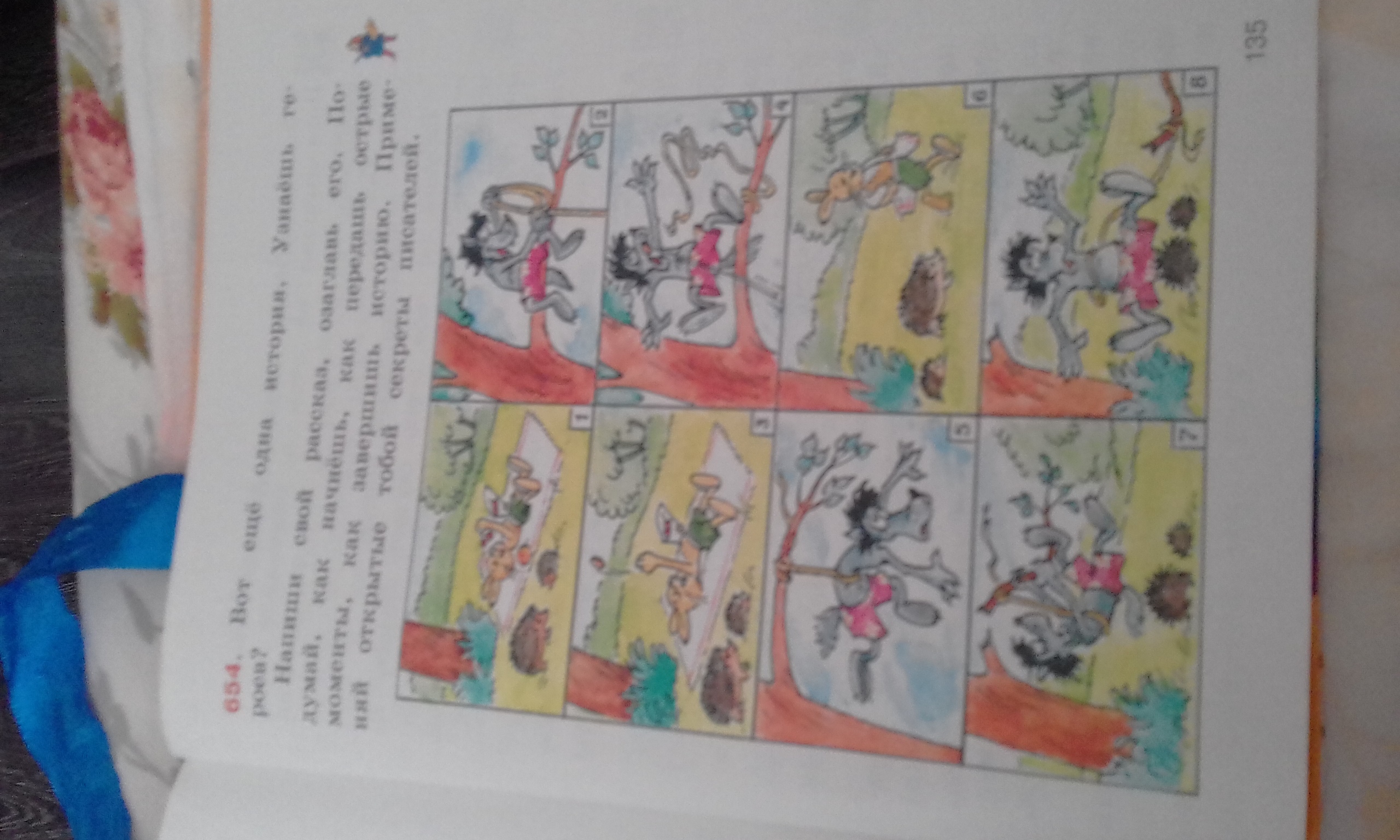 Однажды зайка лежал над деревом и ел ягоды. Но вот волк решил схватить зайца за верёвку. Вот зайка заметил волка и бросил косточку прямо в волку. Волк заойкал. И повис на дереве за верёвку. Зайка встретил ежей и пошёл прыгать с трамплина. Но вот верёвка оторвалась и волк упал. Он упал прямо на ежей! Он схватился и пошёл за зайцем.