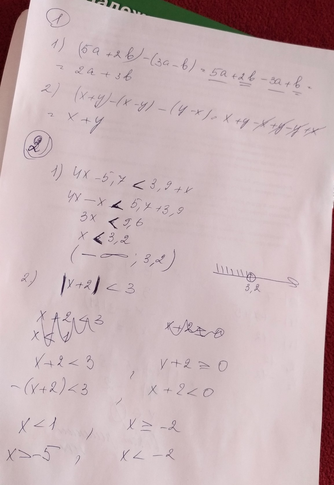 1. 4x-5,7 < 3,9+x 2. x+2/<3
