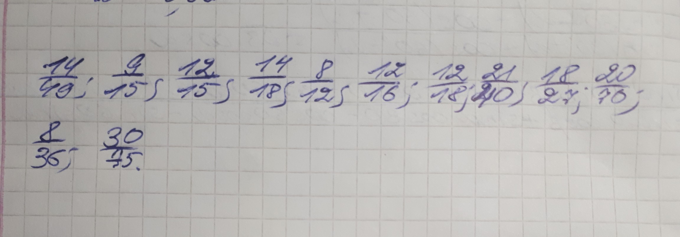 Как записать из обычной дроби в десятичную дробь 14 49-ых,9 15-ых, 12 15-ых, 14-18-ых, 8 12-ых, 12 16-ых, 12 18-ых, 21 40-ых, 18 27-ых, 20 70-ых, 8 36-ых,30 75-ых