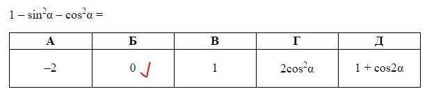 1-(sin²α+cos²α) = 1-1=0
