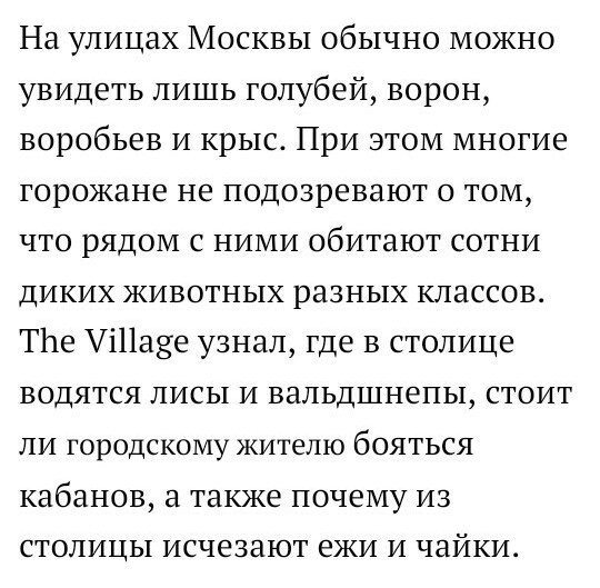 На наш взор обычно попадаются собаки, иногда на деревьях можно увидит прыгающих с ветки на вектку белок, птиц, даже бывает, можно увидите маленьких ёжиков.