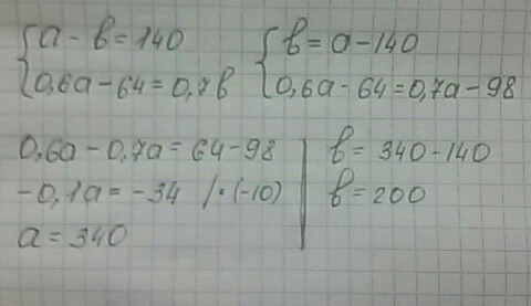 Ответ: большее число 340; меньшее 200