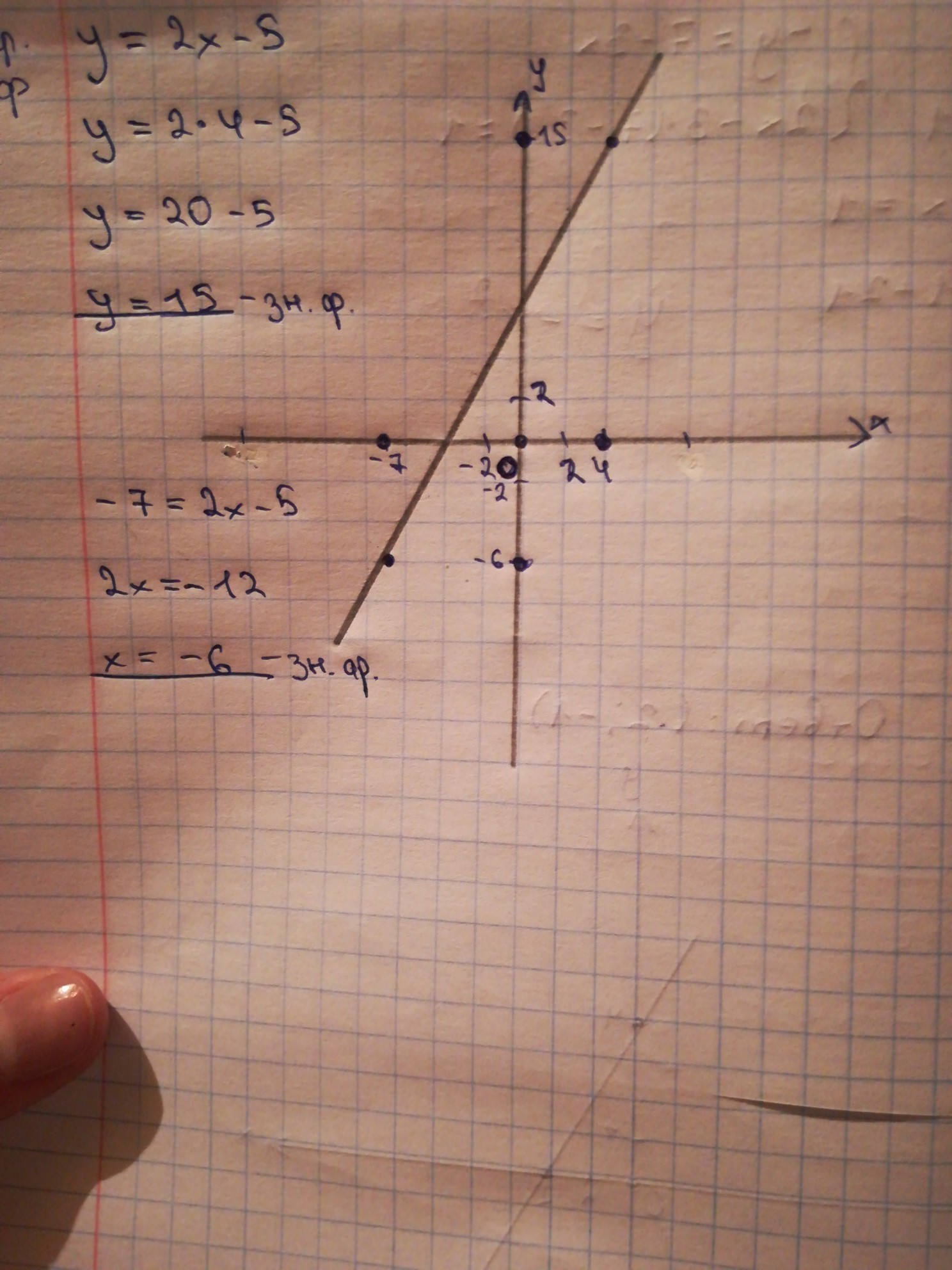 Постройте график функции y = 2x – 5. Пользуясь графиком, найдите: