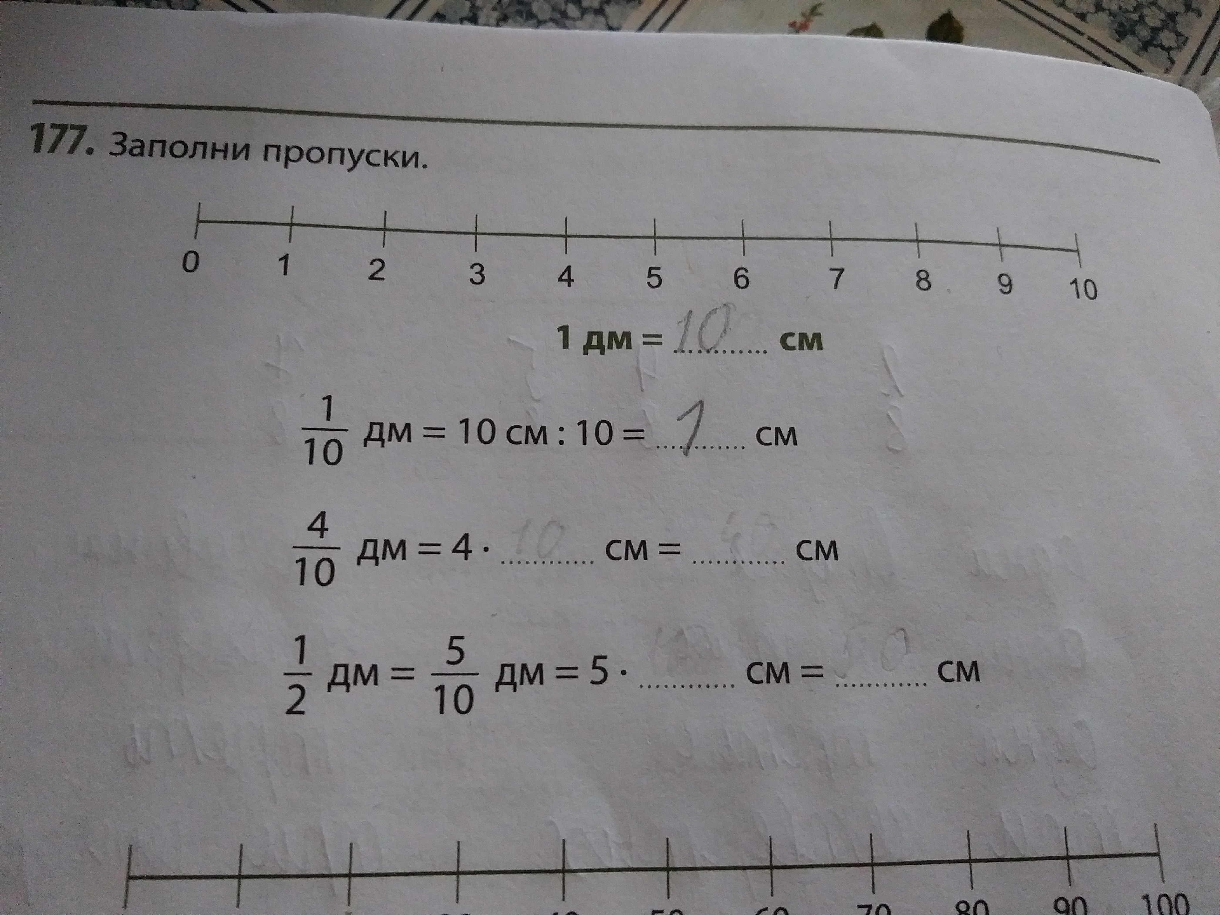 1/2 дм = 5/10 дм = 5*1 см = 5см