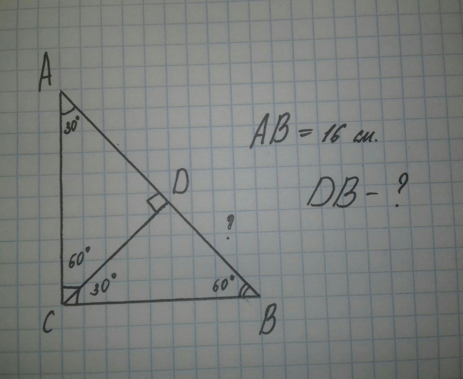 в прямоугольном треугольнике ABC угол C 90 градусов угол А 30 градусов CD высота AB 16см найдите BD