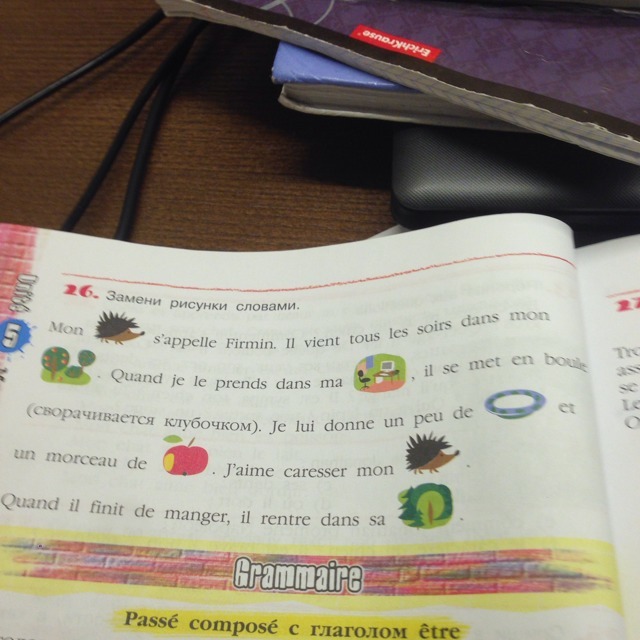 Mon hérisson s'appelle Firmin. Il vient tous les soir dans mon jardin. Quand je le prends dans ma chambre il se met en boule. Je lui donne un peu de lait et un morceau de pomme. J'aime caresser mon hérisson. Quand il finit de manger, il rentre dans sa forêt.