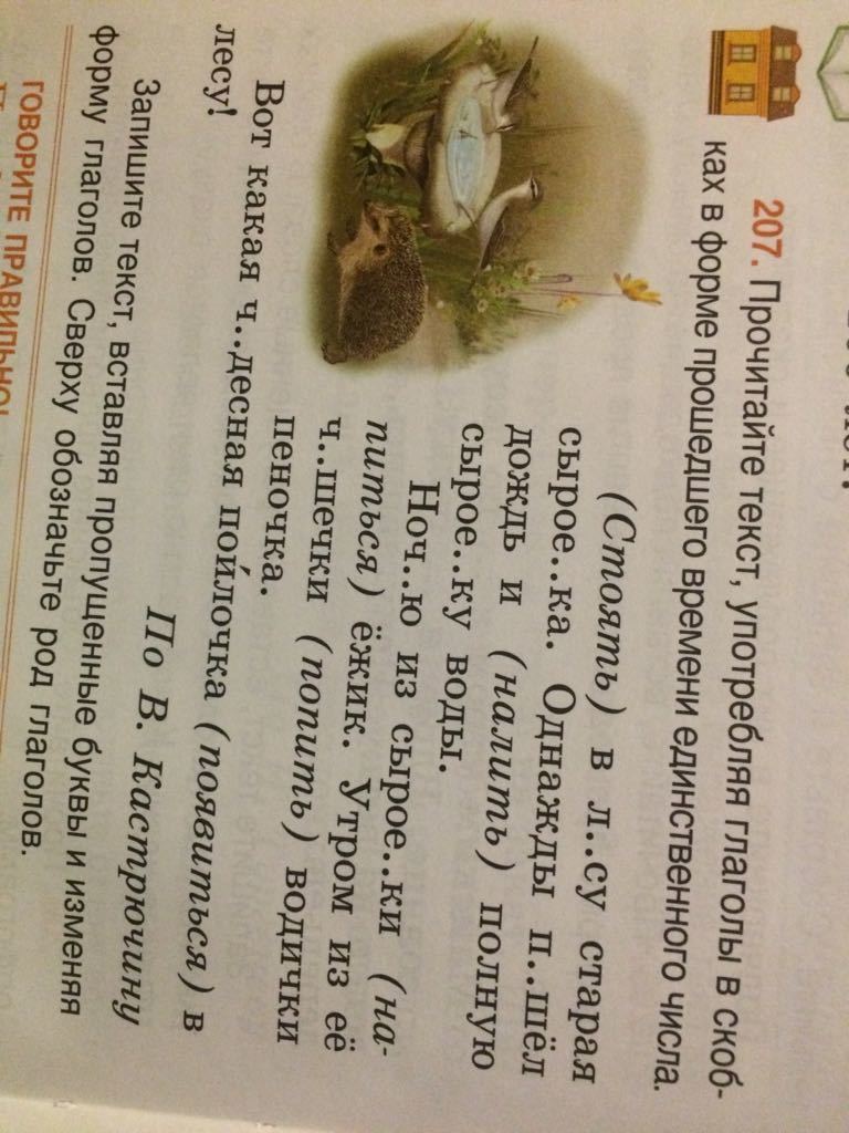 1)Стояла-ж.р,налил-м.р,напился-м.р,попил-м.р,появилась-ж.р.(прош.вр.,ед.ч.)