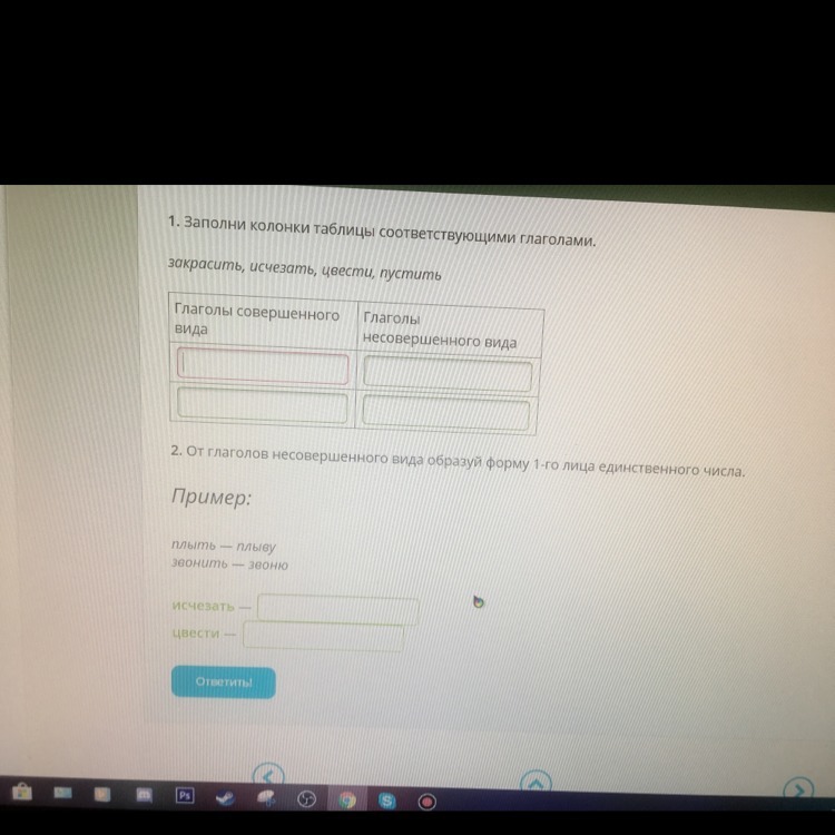 Глаголы совершенного вида отвечают на вопрос (что сделать?,а несовершенного (что делать)