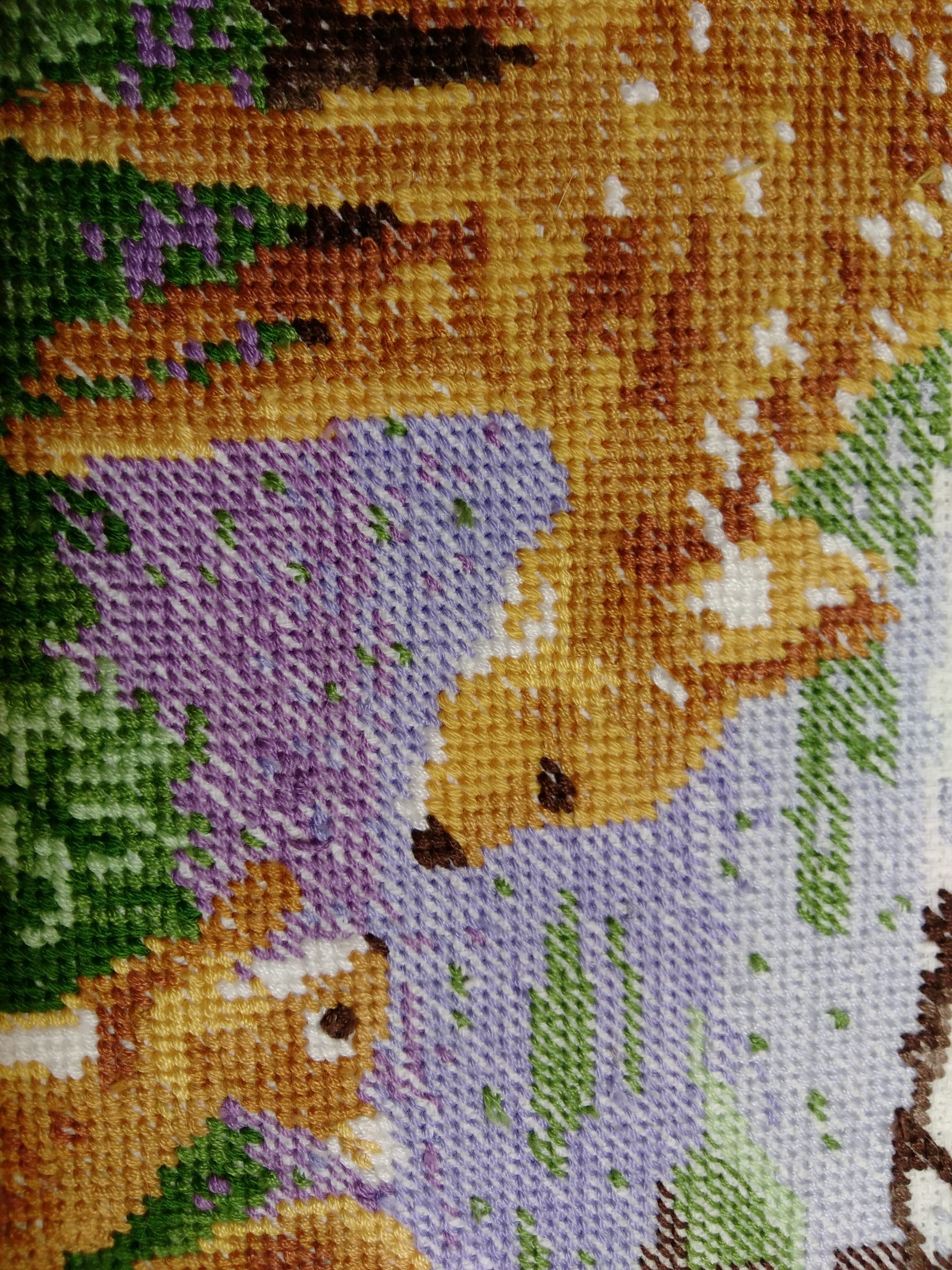 вышито крестиком , есть специальная покрашеная материя с рисунком , остается только вышить , а есть люди у которых есть образное мышление , можете посмотреть видео о вышивании