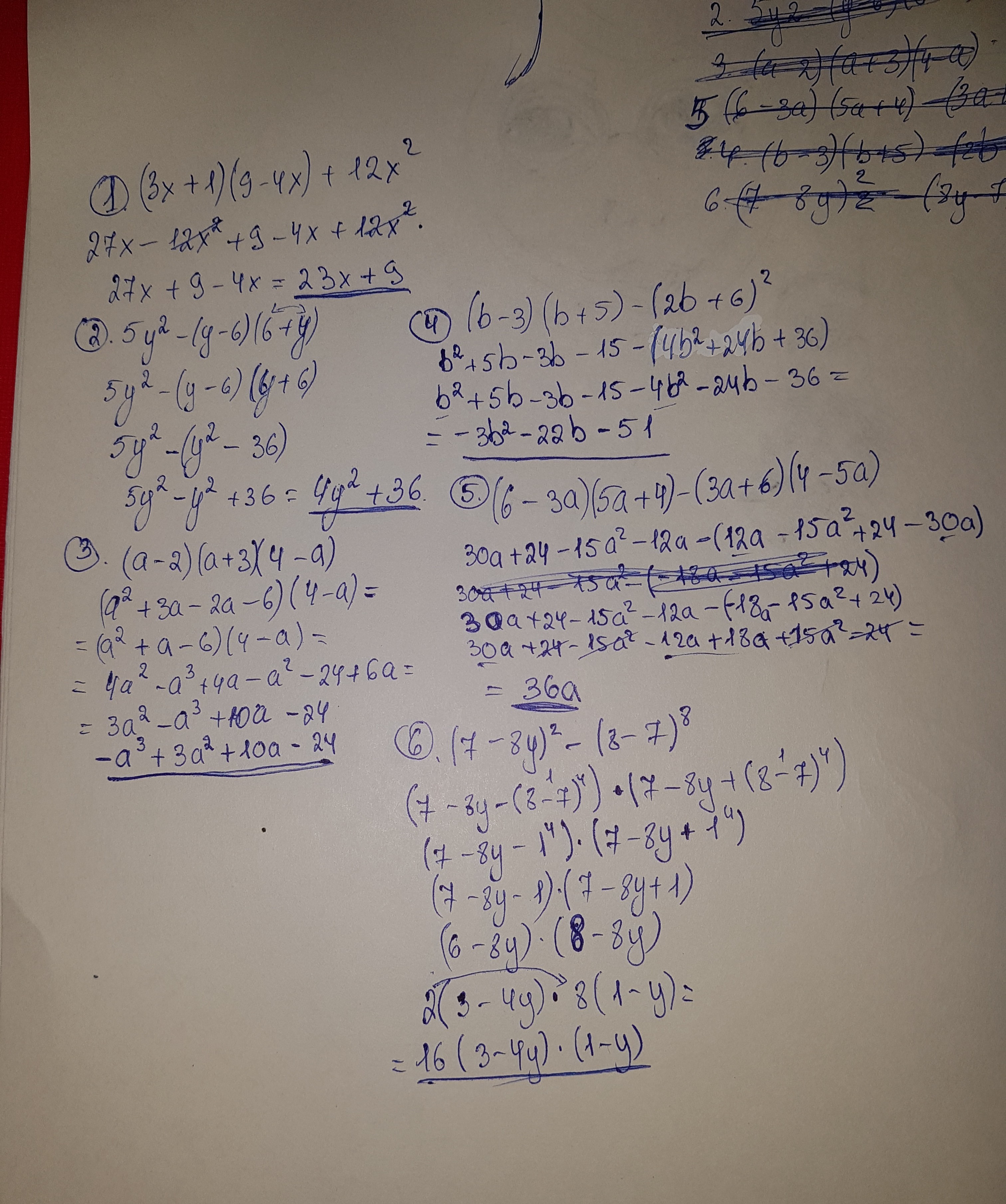 1)(3х +1)(9 -4х) + 12х2 3) (а - 2)(а + 3)(4 - а) 5) (6-3а)(5а+4) – (3а+6)(4-5а)