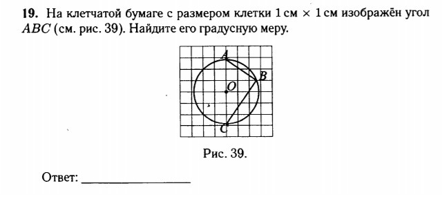 На клетчатой бумаге с размером клетки 1 см на 1 см изображён угол ABC. Найдите его градусную меру