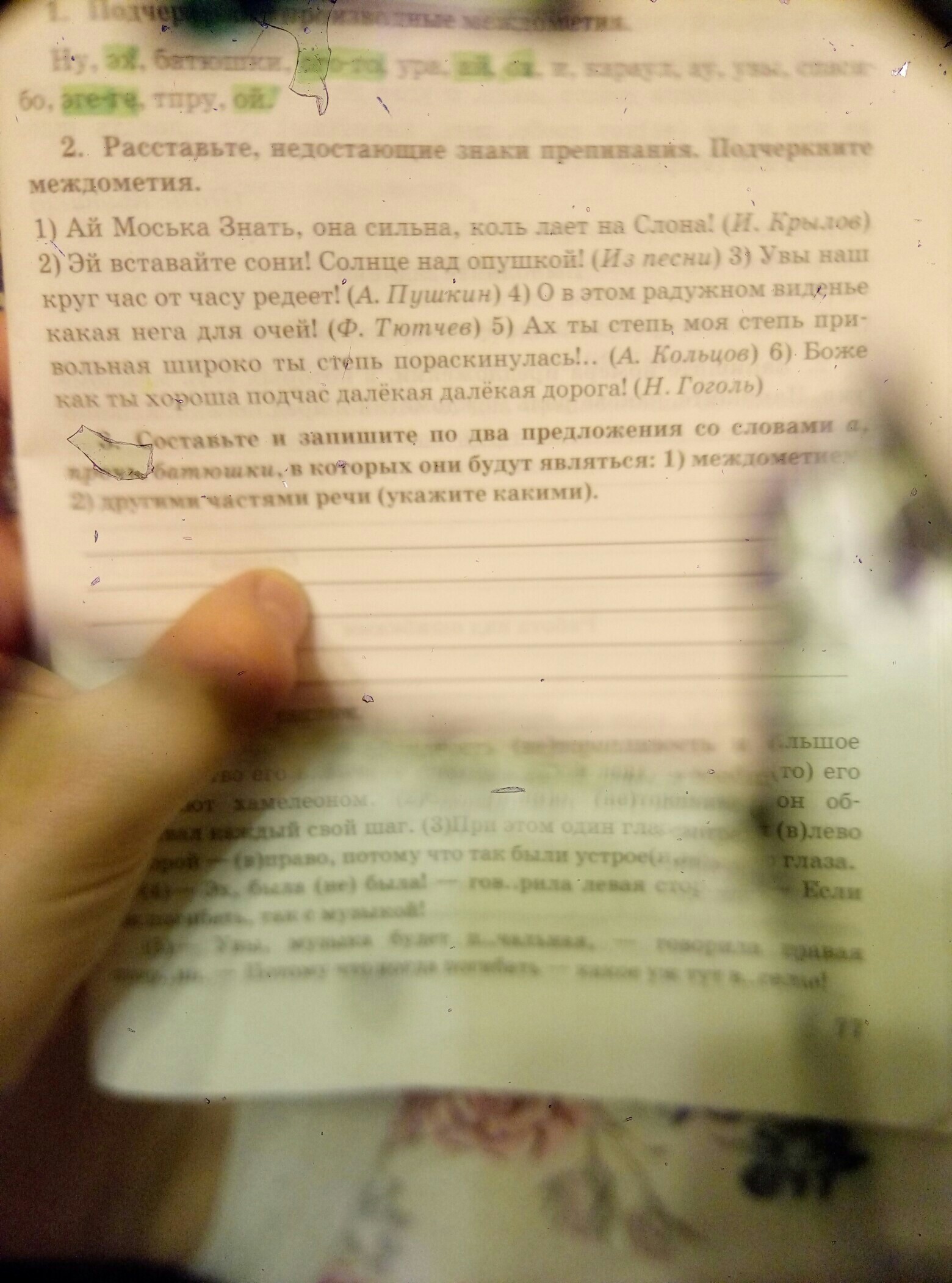 расстпвте , недостающие знаеи припинания . подчеркните междометия. извините за качество фото , просто камера разбита и это осколки (