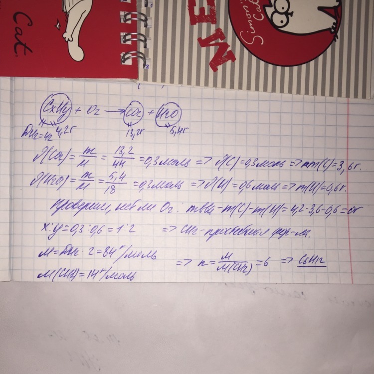 При сжигании 4,2г углеводорода образовалось 13,2г углекислого газа и 5,4г воды. Относительная плотность этого вещества по водороду 42. Определите молекулярную формулу данного вещества.