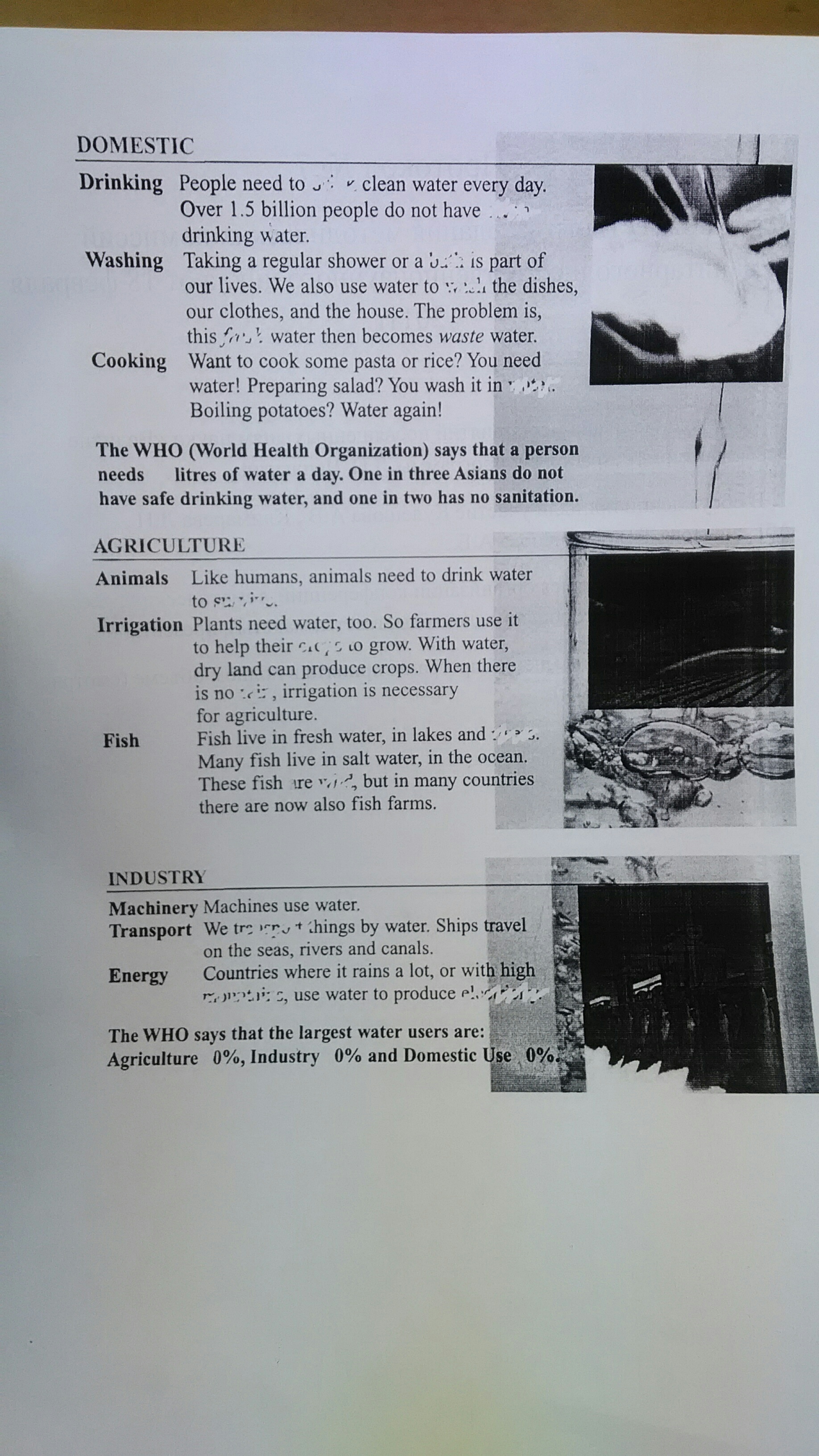 DOMESTIC: drink, clean, bath, wash, fresh, water.