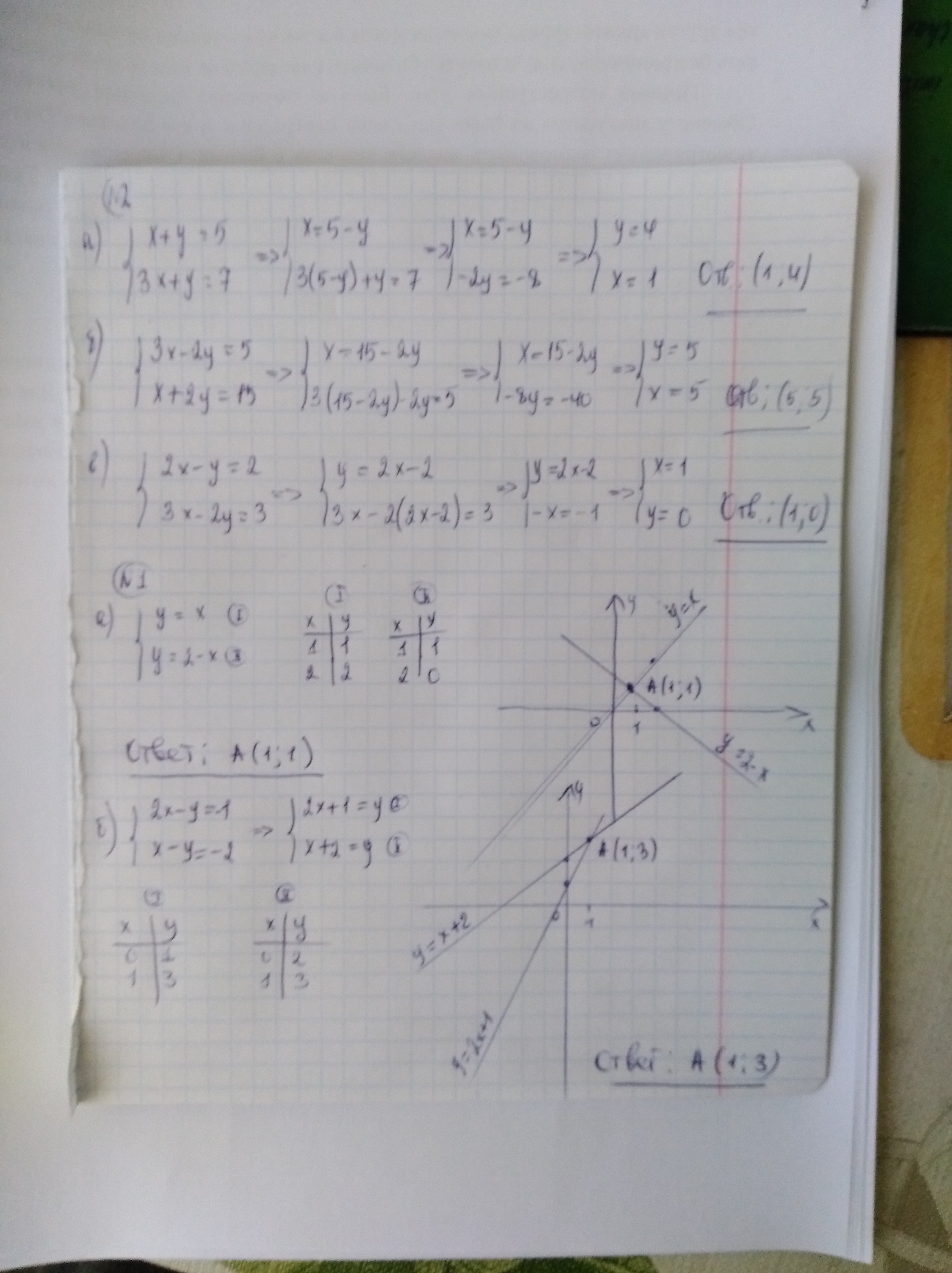 В первом графика первая функция проходит через ноль и далее по диагонали клеток.