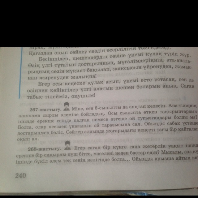 267.Маған өткен тақырыптардың ішінде одағай тақырыбы ерекше ұнады.Тіптен қарап отырсақ біз оларсыз өмірімізді елестете алмайды екенбіз.Біз еш нәрсеге танданбасақ,шошынбасақ,онда өмірімізді қалай елестетер едік.Сол сезімдерді бір-бірімізбен бөліспесек не болар еді?Міне, осындай көңіл күйлерімізді білдіретін,қарым-қатынасымызға жан беретін сөздер-одағай сөздер.