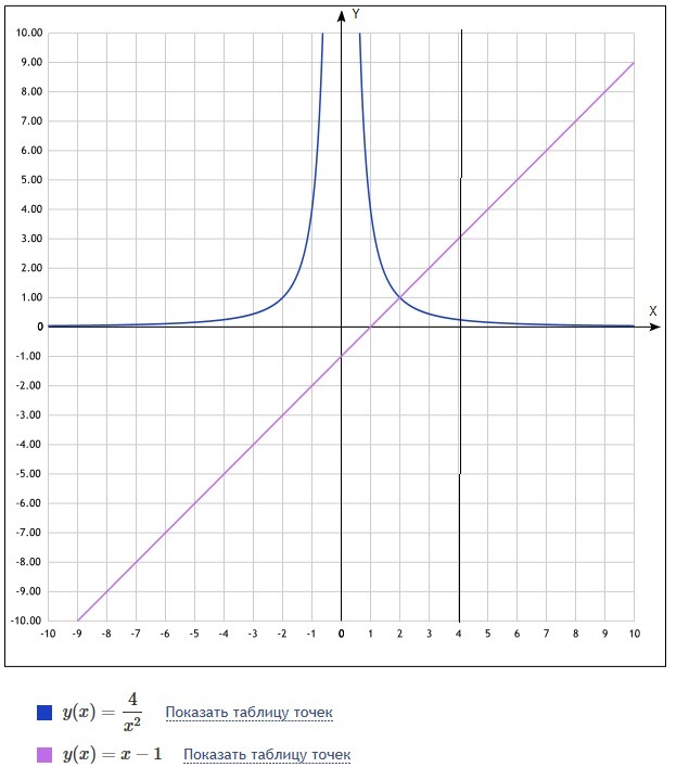 пожалуйста,прошу в 3 раз<br />найдите площадь фигуры,ограниченной заданными линиями <br />y=4/х^2,y=x-1,x=4