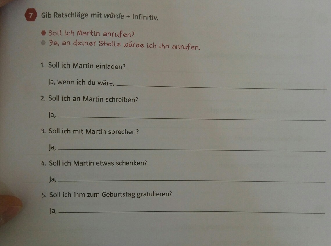 5. ..., an deiner Stelle würde ich ihm zum Geburtstag gratulieren.
