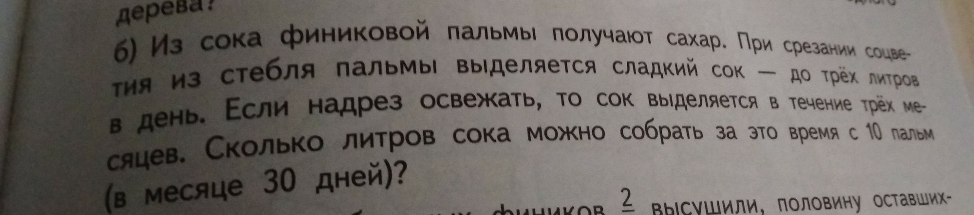 3).30·90=2700(л)—можно собрать с 10 пальм за 3 месяца
