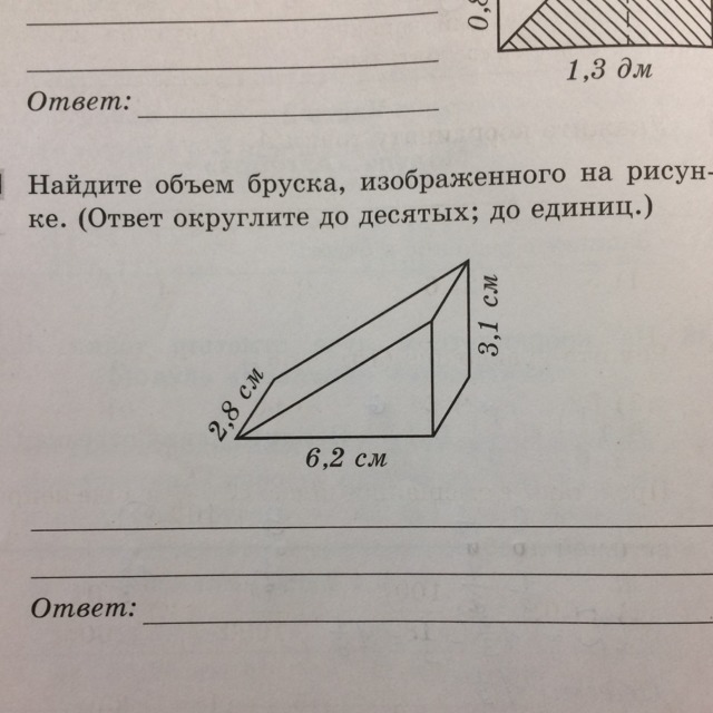V=6,2·3,1·2,8/2=26,908≈26,9 см³≈27 см³.