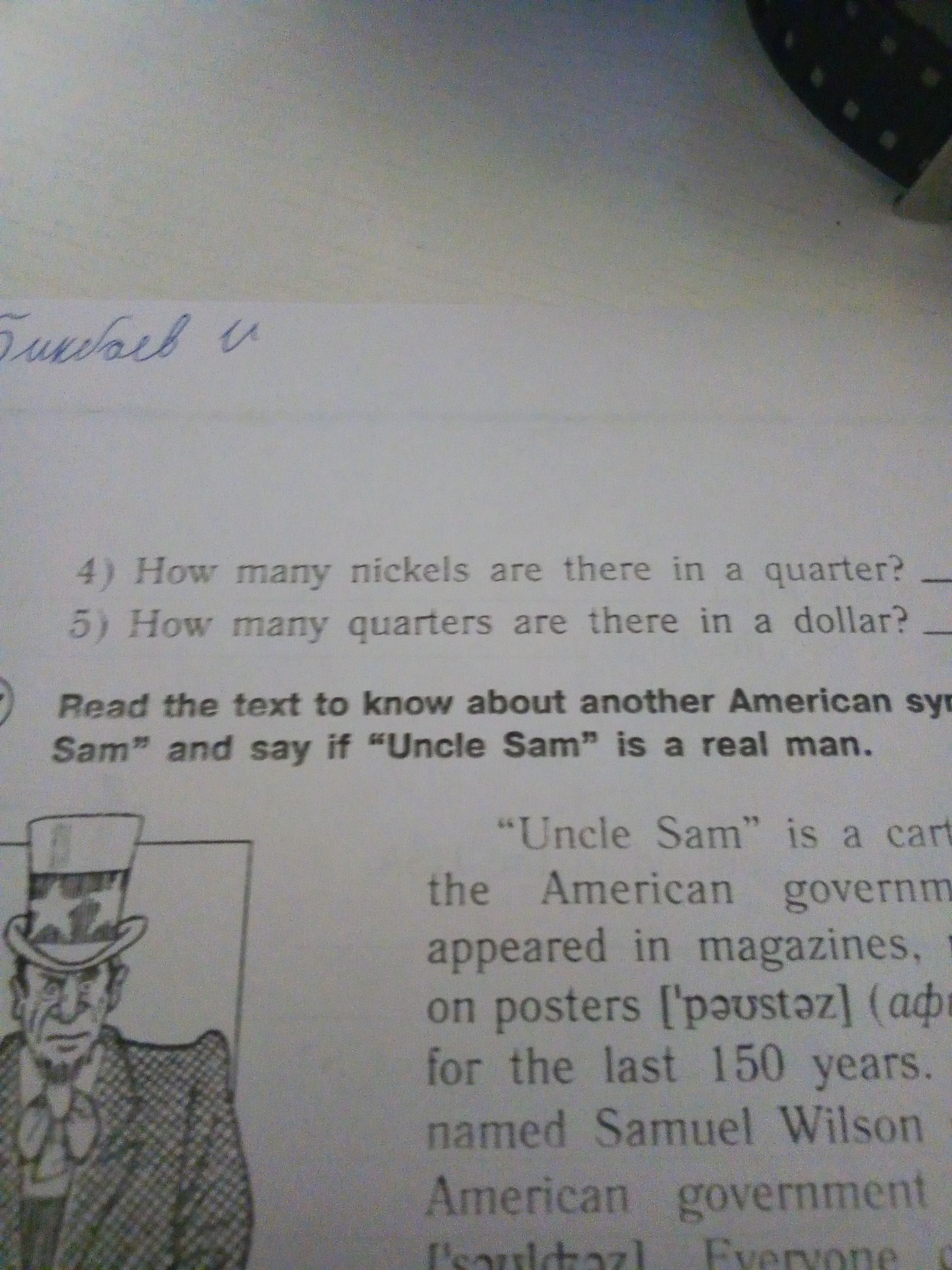4) 5 nickels (5 пятицентовых монет в четвертаке)