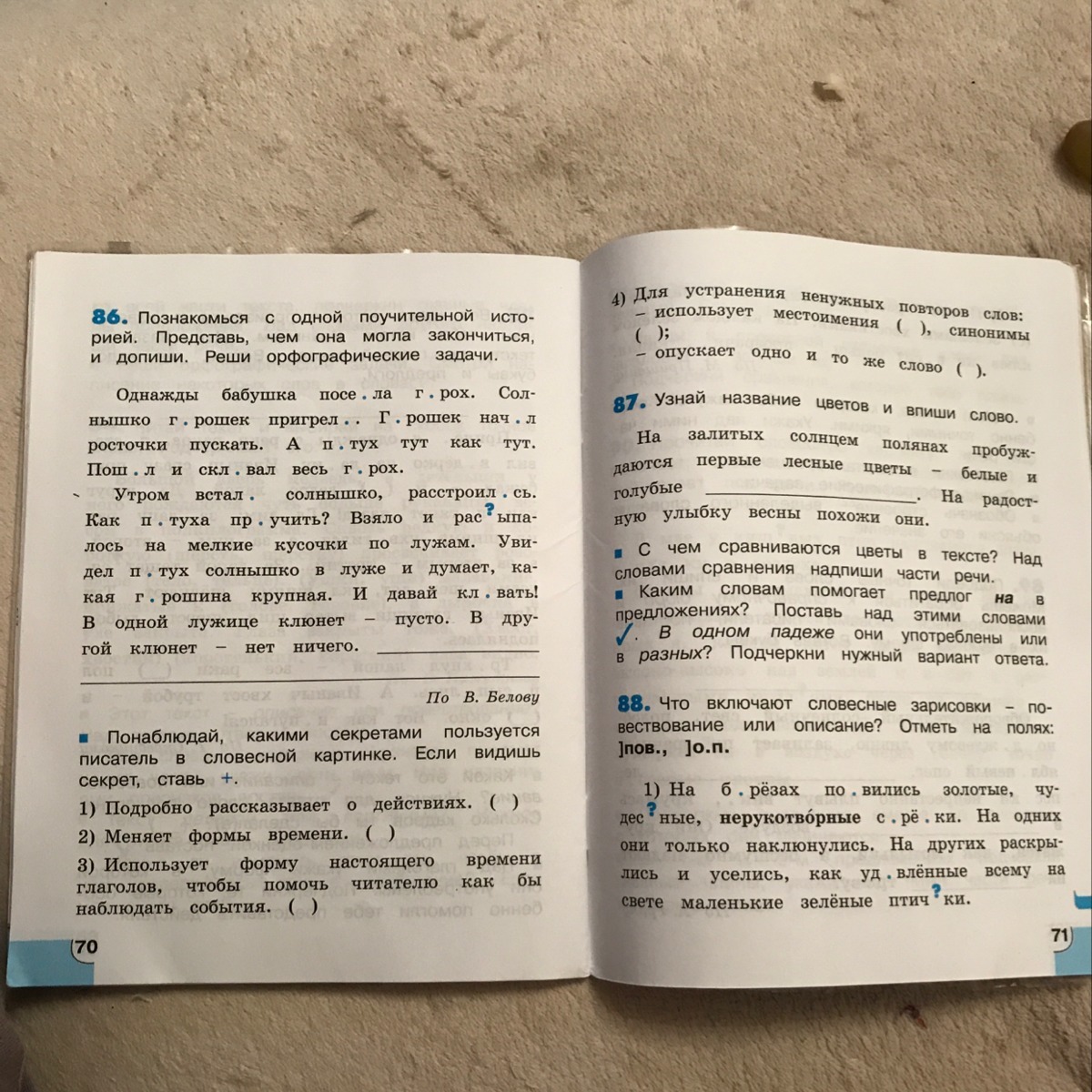 Посеяла горох, горошек пригрело, горошек начал, петух, пошёл, склювал весь горох, встало, расстроилось, петуха приучить, рассыпалось, клевать.