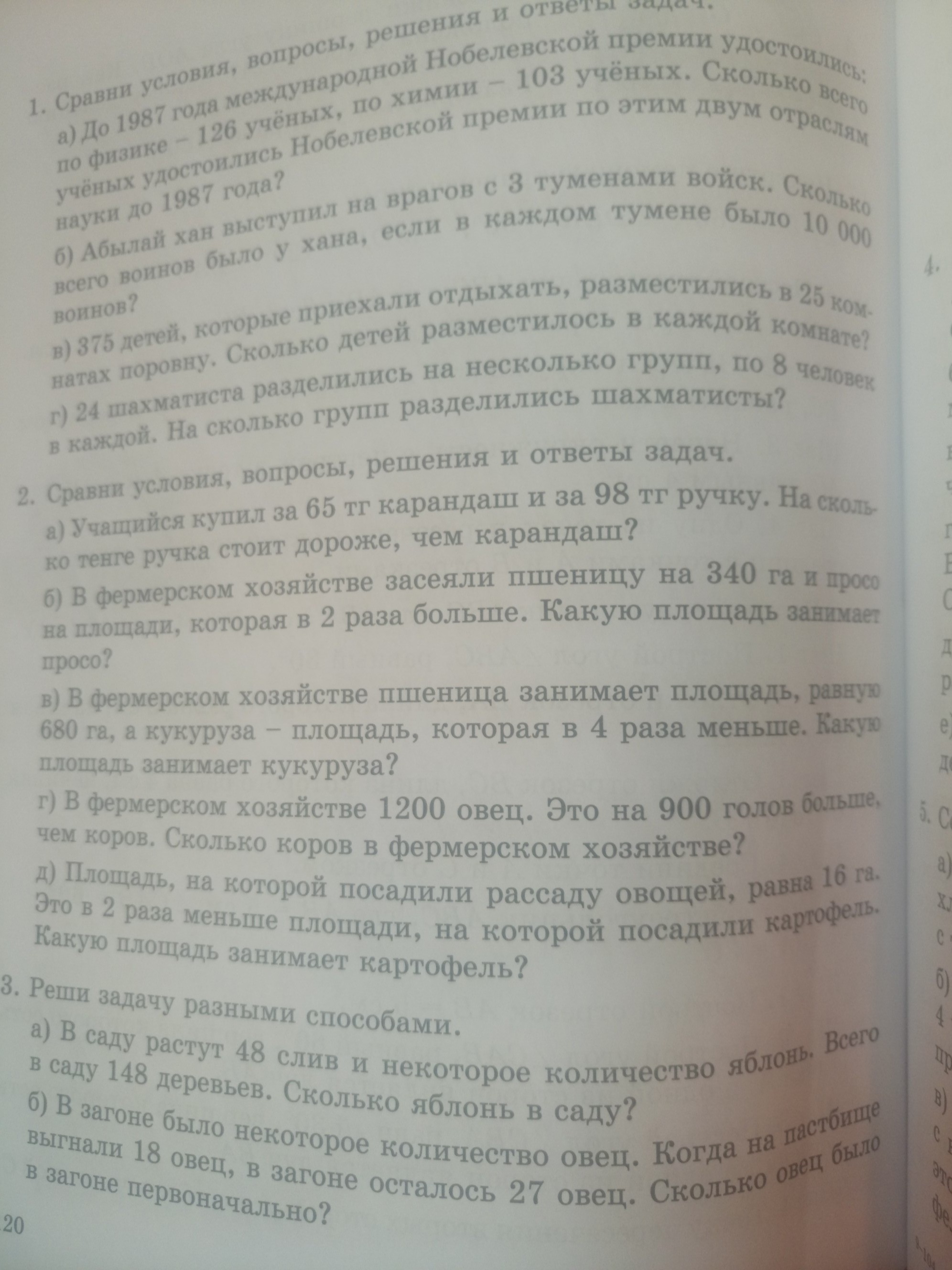 а) 98-65=33(тг) Б)340•2=680(га) В)680:4=170(га)