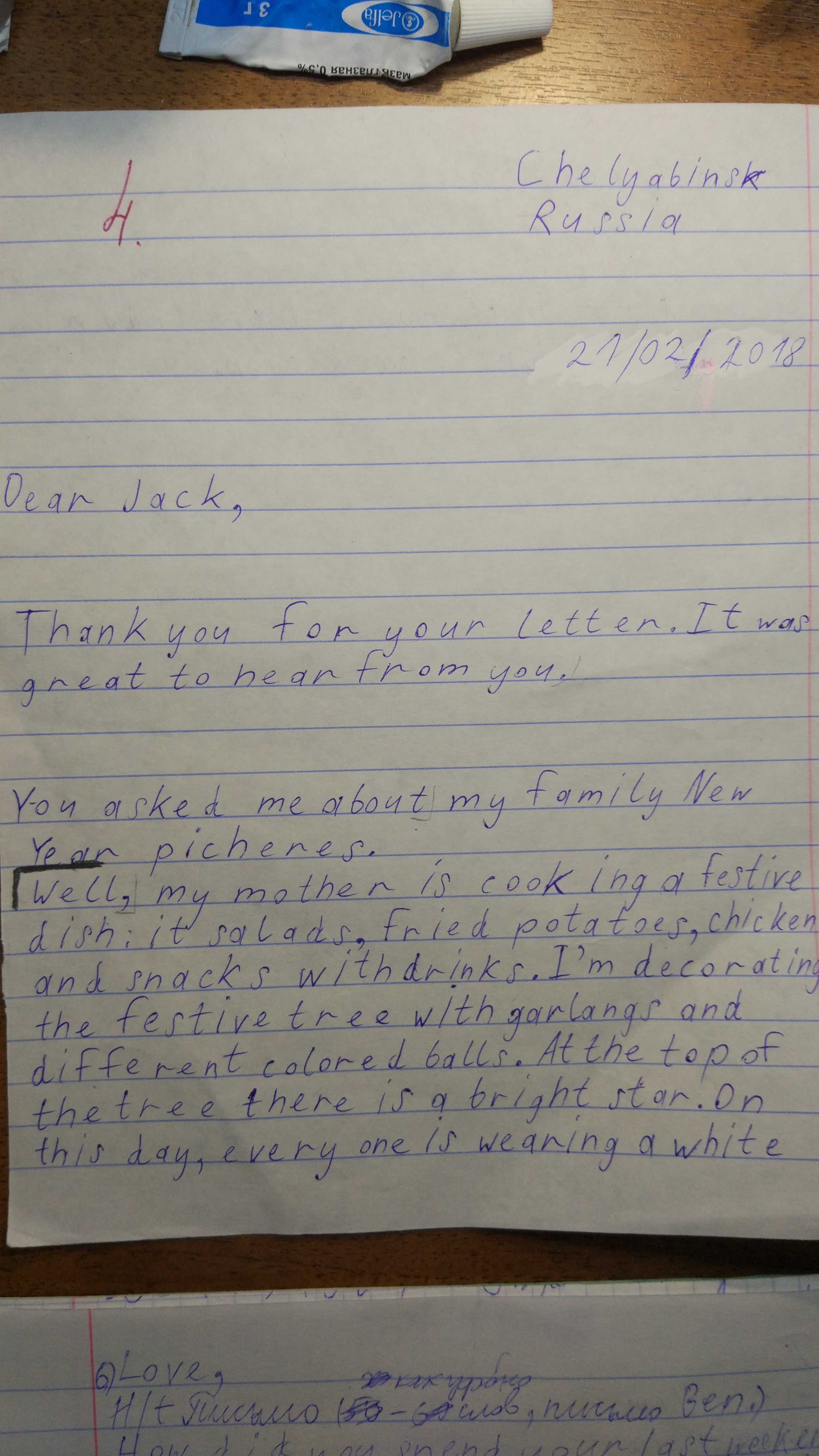 Учительница сказала сложные слова не использовать. Я в 6 классе. Пример письма на фотографиях, я выделил карандашом ярко то что изменить надо по теме. Размер части по теме 30-50 слов. Пишите письмо некому человеку по имени Ben.