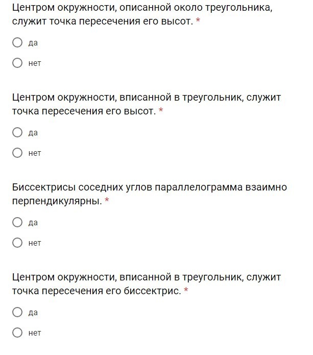 1 страница: да, нет (равных по площади), да, нет (вписанной), да (совпадают, когда квадрат)