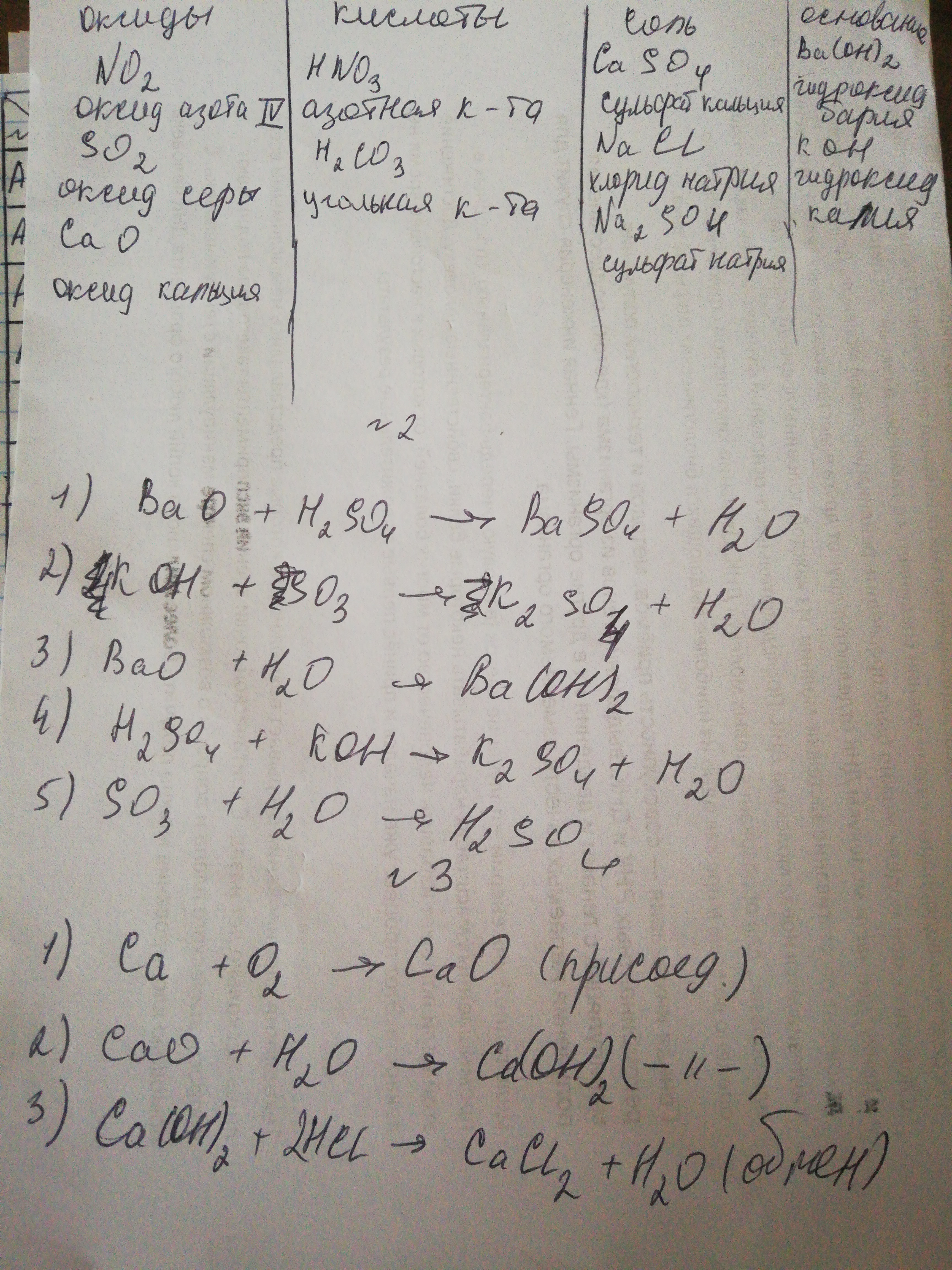 1)Распределите по классам(оксиды, кислоты, соли, основания) и дайте название следующим веществам: NO2; CaSO4; Ba(OH)2; SO2; HNO3; NaCl; CaO; Na2SO4; H2CO3;KOH.