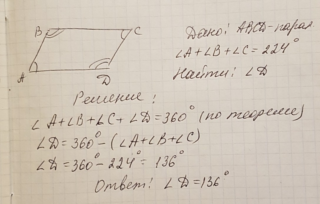 Сумма углов параллелограмма равна 360. А так как мы имеем в общей сумме 3 угла, то величина тупого угла: