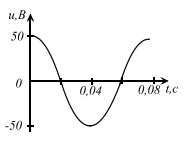 Амплитуда напряжения - U0 = 50 (В); T=0.8(с); V=1.25(Гц); w = 2*Пи/T = 2*Пи*V = 2.5*3.14 = 7.85(рад/с)