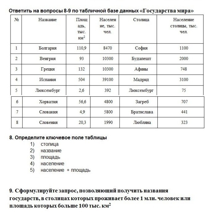 (>1млн.человек в столице) или (площадь>100тыс.км²)