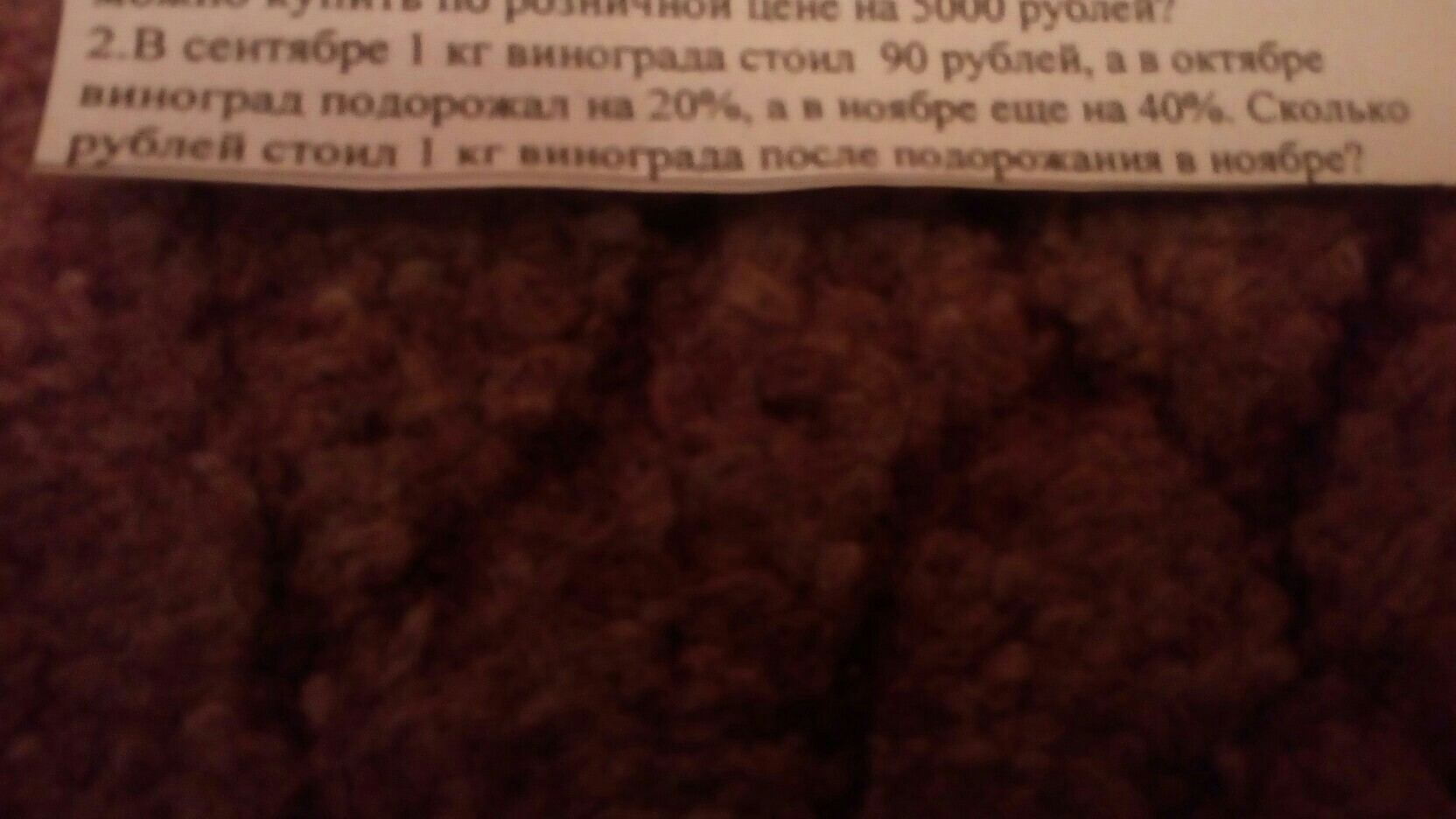 В сентябре 1 кг винограда стоил 90 рублей, а в октябре виноград подорожал на 20%, а в ноябре ещё на 40%. Сколько рублей стоил 1 кг винограда после подорожания в ноябре?