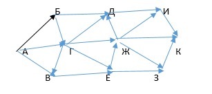 На рисунке – схема дорог, связывающих города А, Б, В, Г, Д, Е, Ж и К. По