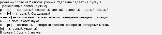 Р - [ р] -согл.,твёрд., звонкий,У - [ у] - гласн. безударн.,Ж - [ ж] - согл., звонк.,твёрд.,Ь - [ - ],Я - [й] - согл, зв., мягк.,