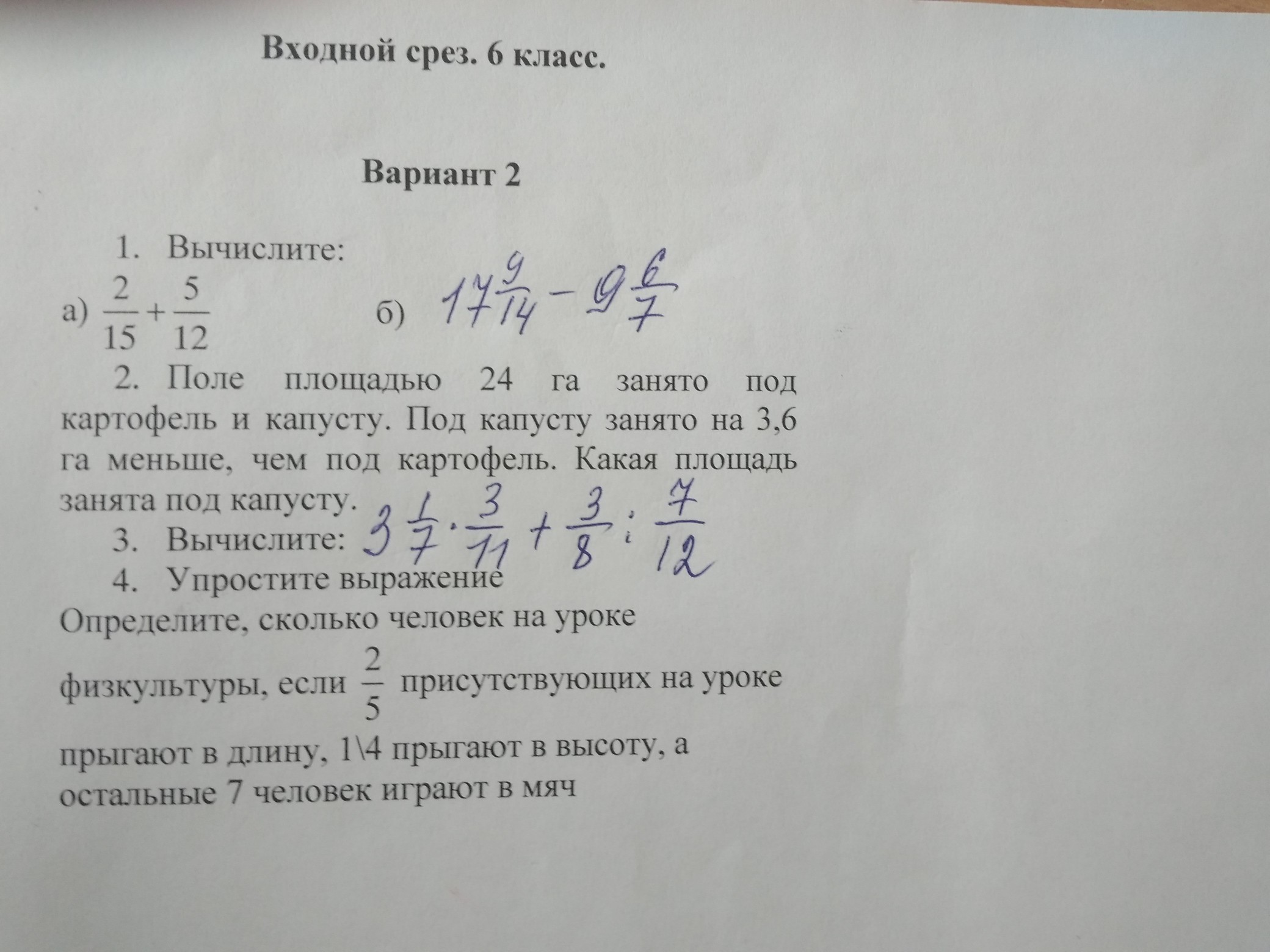 (24 - 3,6) : 2 = 20,4 : 2 = 10,2га занято капустой