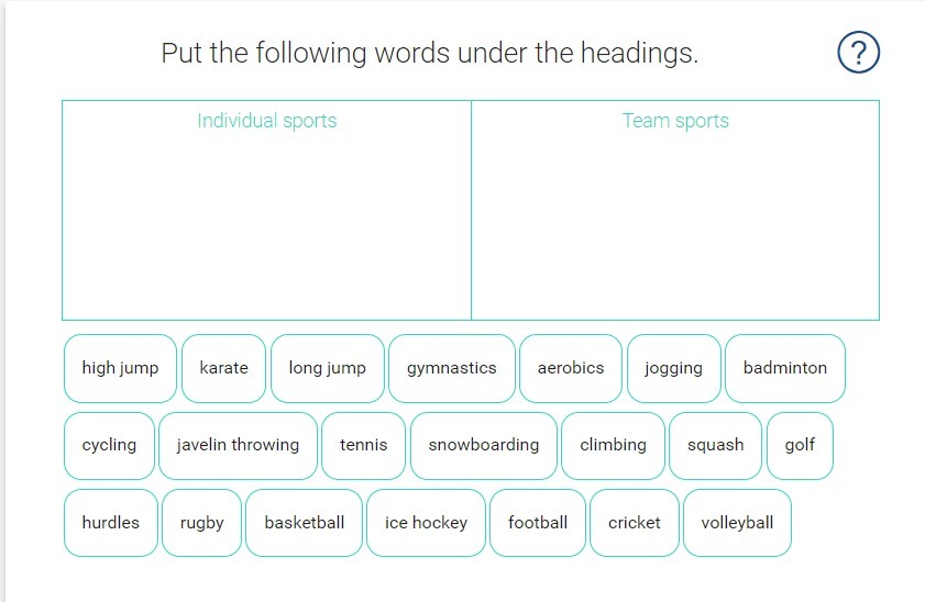 aerobics, squash, basketball, ice hockey, football, cricket, volleyball.
