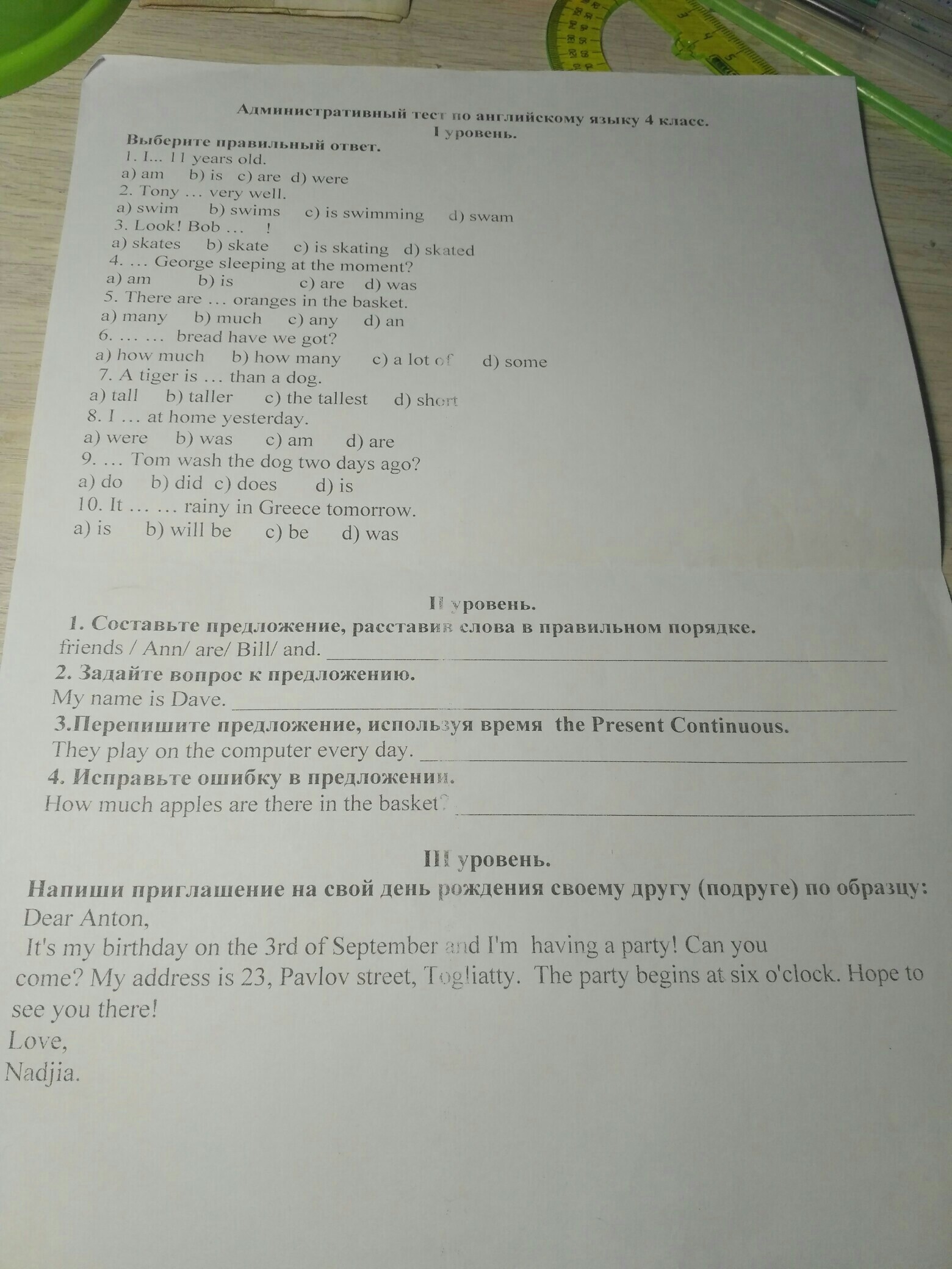 It's my birthday on the (пишешь дату рождения) and I'm having a party! Can you come? My address is (пишешь адрес). The party at five o'clock. Hope to see you there!