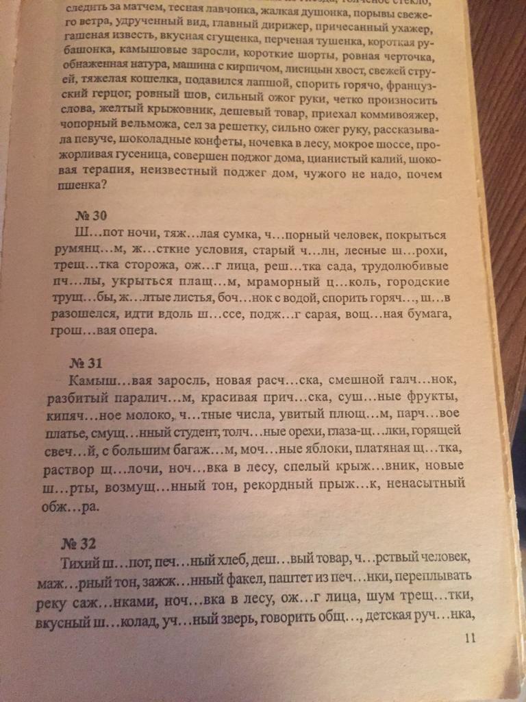 Шёпот ночи, тяжёлая сумка, чепорный человек, покрыться румянцем, жёсткие условия, старый член(семьи), лесные шорохи, трещотка сторожа, ожог лица, решетка сада, трудолюбивые пчелы, укрыться плащем, мраморный цоколь,городские трущебы, жёлтые листья, бочонок с водой, спорить горячо, шев разошёлся, идти вдоль шоссе, поджог сарая, вощеная бумага, грошевая опера.