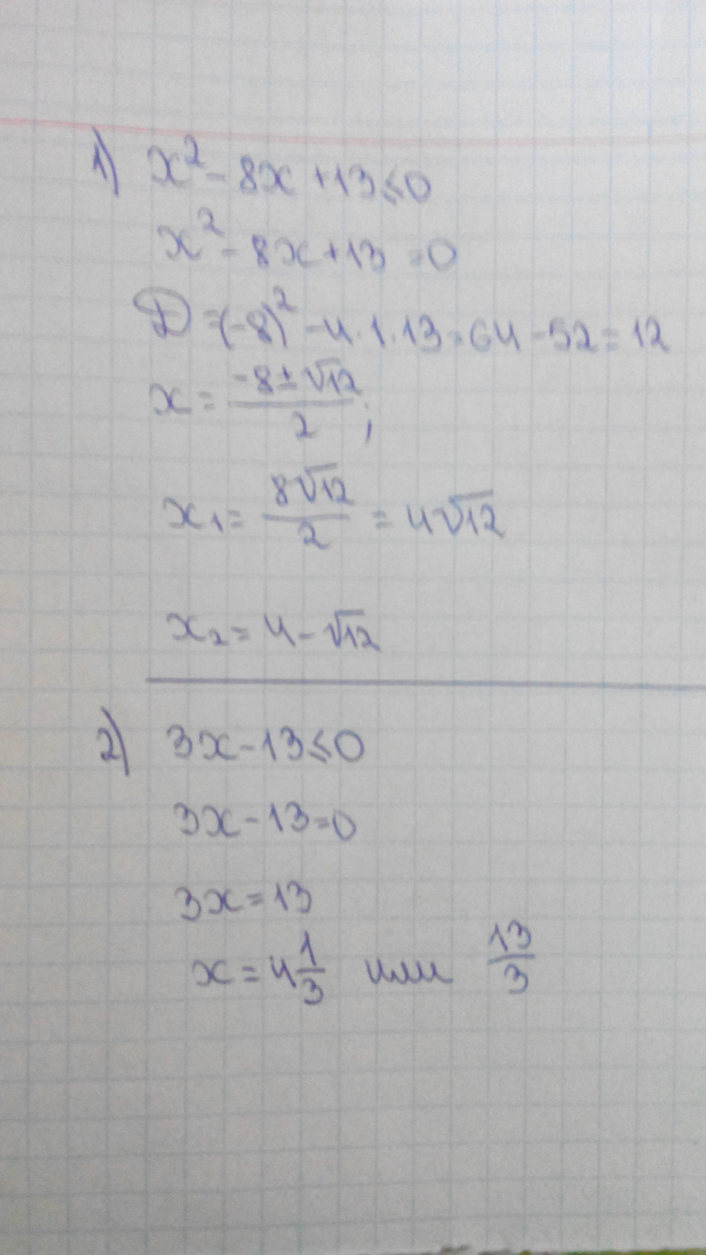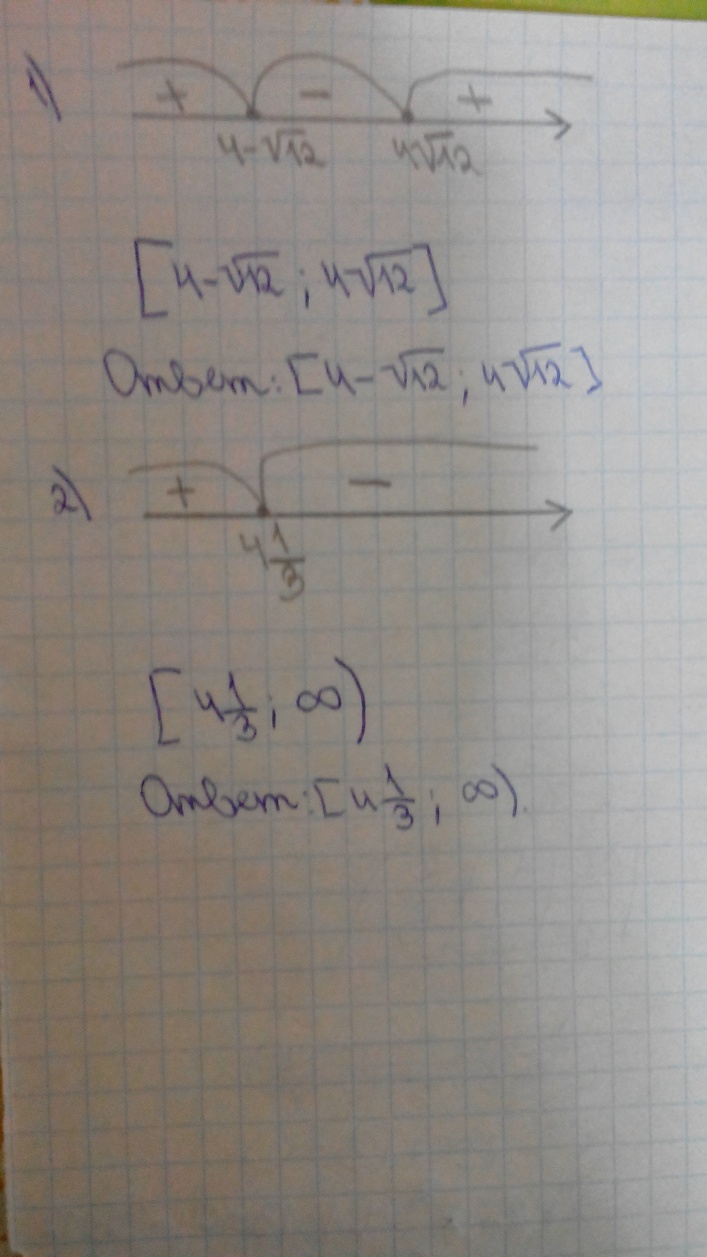 В первом примере корни х1 и х2 вычислены наверное не совсем правильно.