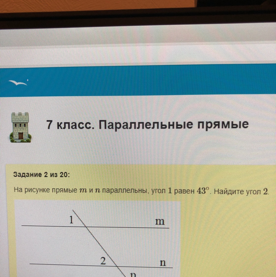 Угол 1=углу 2(как соответственные углы), а значит угол 2=43°