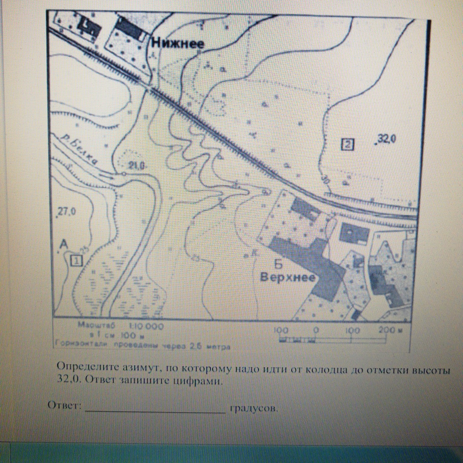 так же надо определить азимут,по которому надо идти от колодца до отметки высоты 32,0.