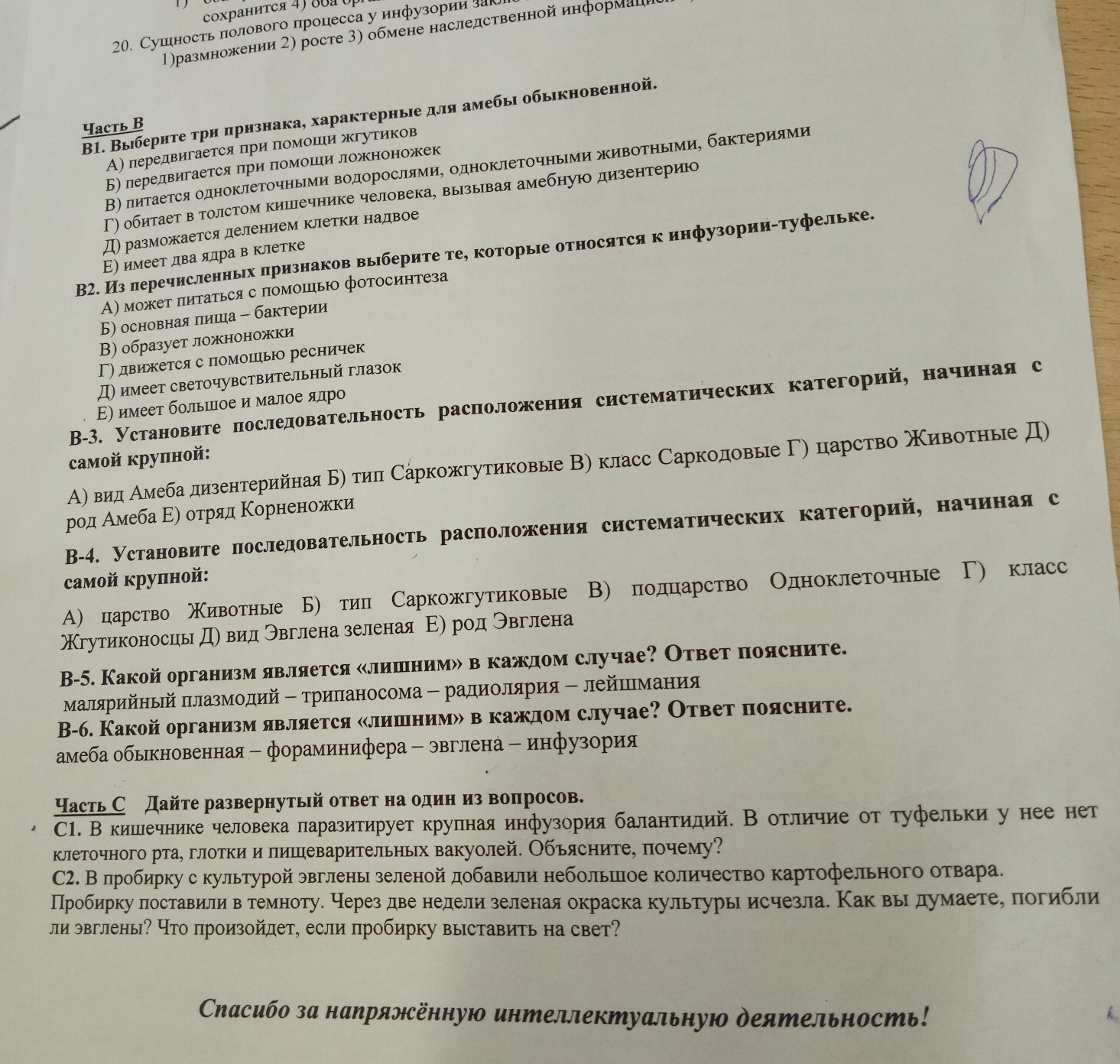 в6. скорее всего эвглена потому что она способна к фотосинтезу
