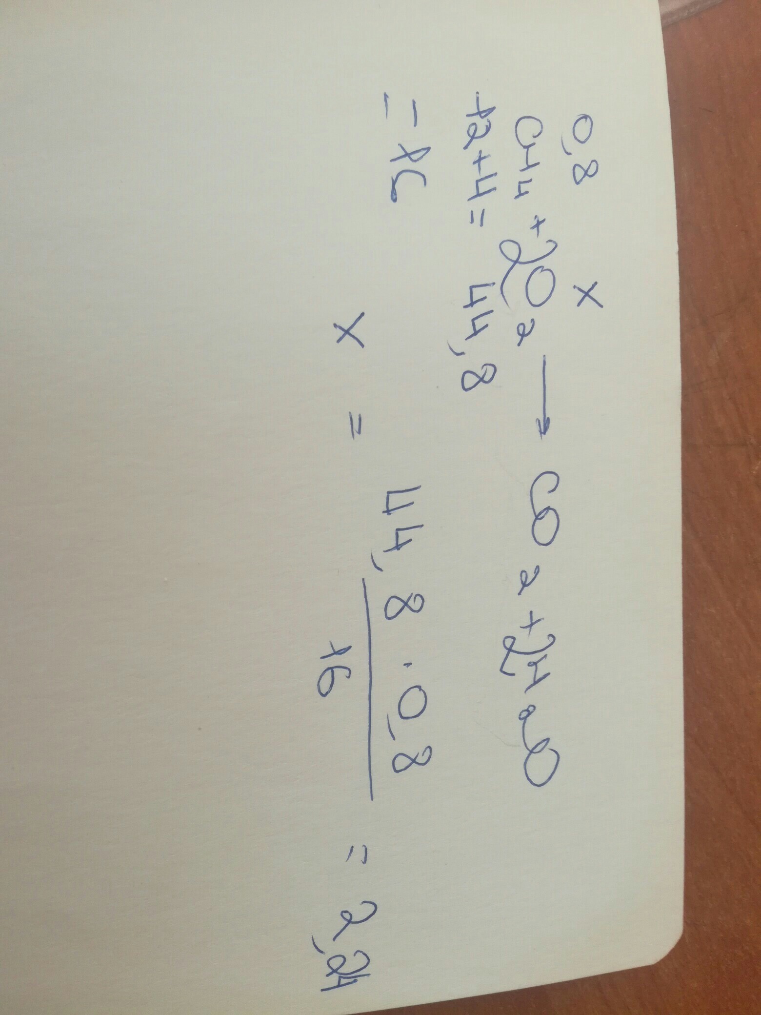 на полное сгорание 0,8 г метана затратится кислород объёмом =2,24