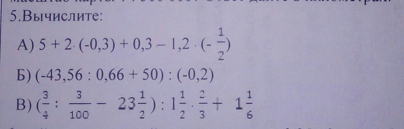 А) 5 + 2*(-0,3) + 0,3 - 1,2 * (- 1/2) = 5 - 0,6 + 0,3 - 1,2 *( - 0,5) = 4,7 + 0,6 = 5,3