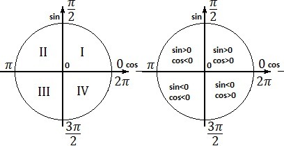 sin a > 0, cos a < 0 Во II четверти.
